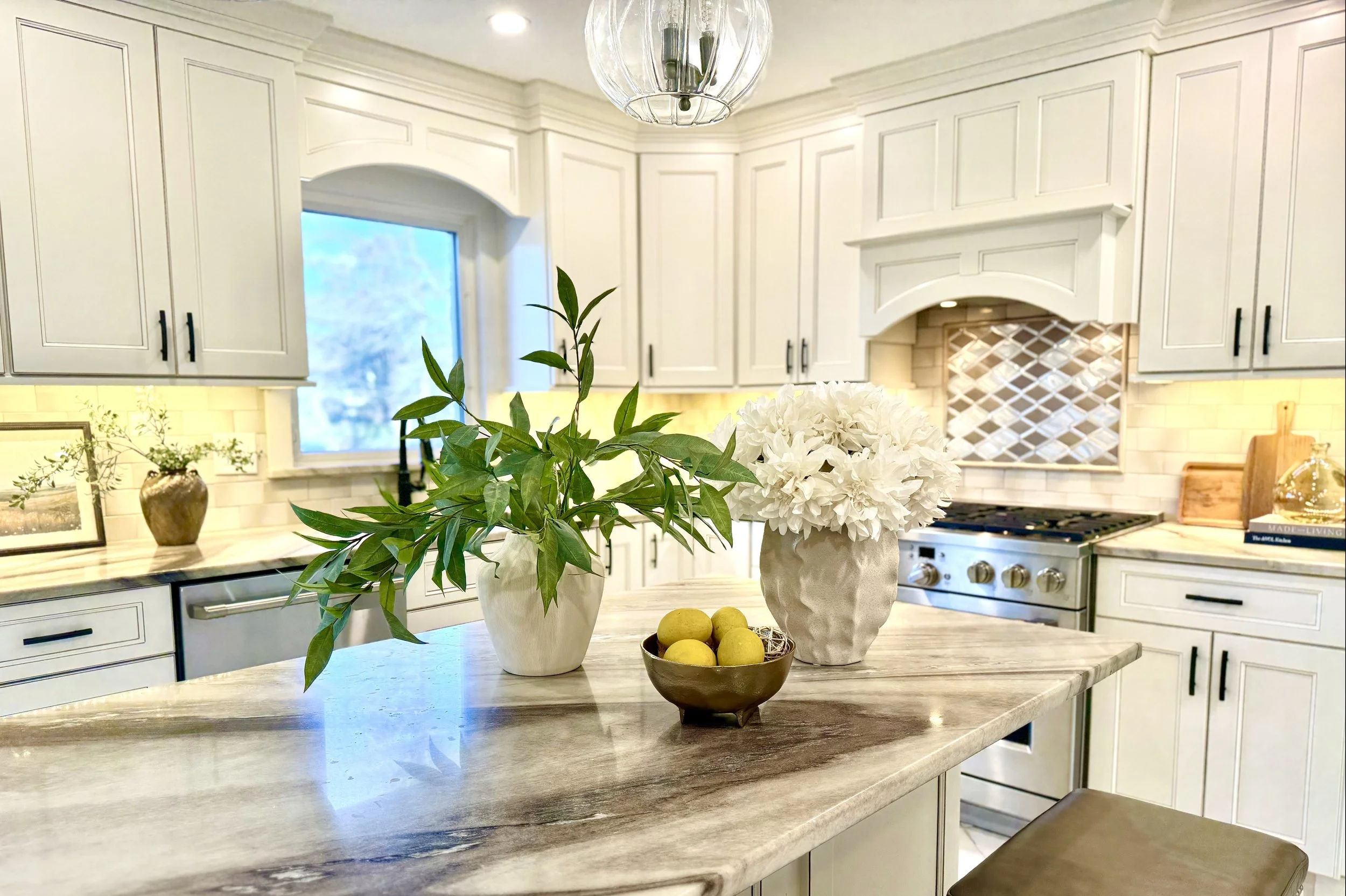 Every space has a story to tell, and these before and after photos captures just that. In each set, the photo to the left is showing the room when I first stepped inside or the ‘before’. The photo to the right in each set is the ‘after’. The same space transformed with colors, textures and details chosen to bring out the home’s personality. From the smallest accents to the biggest changes, each transformation is designed to make the space more beautiful and inviting while meeting the homeowners wants, needs, and personalities. Let’s transform your home today.
